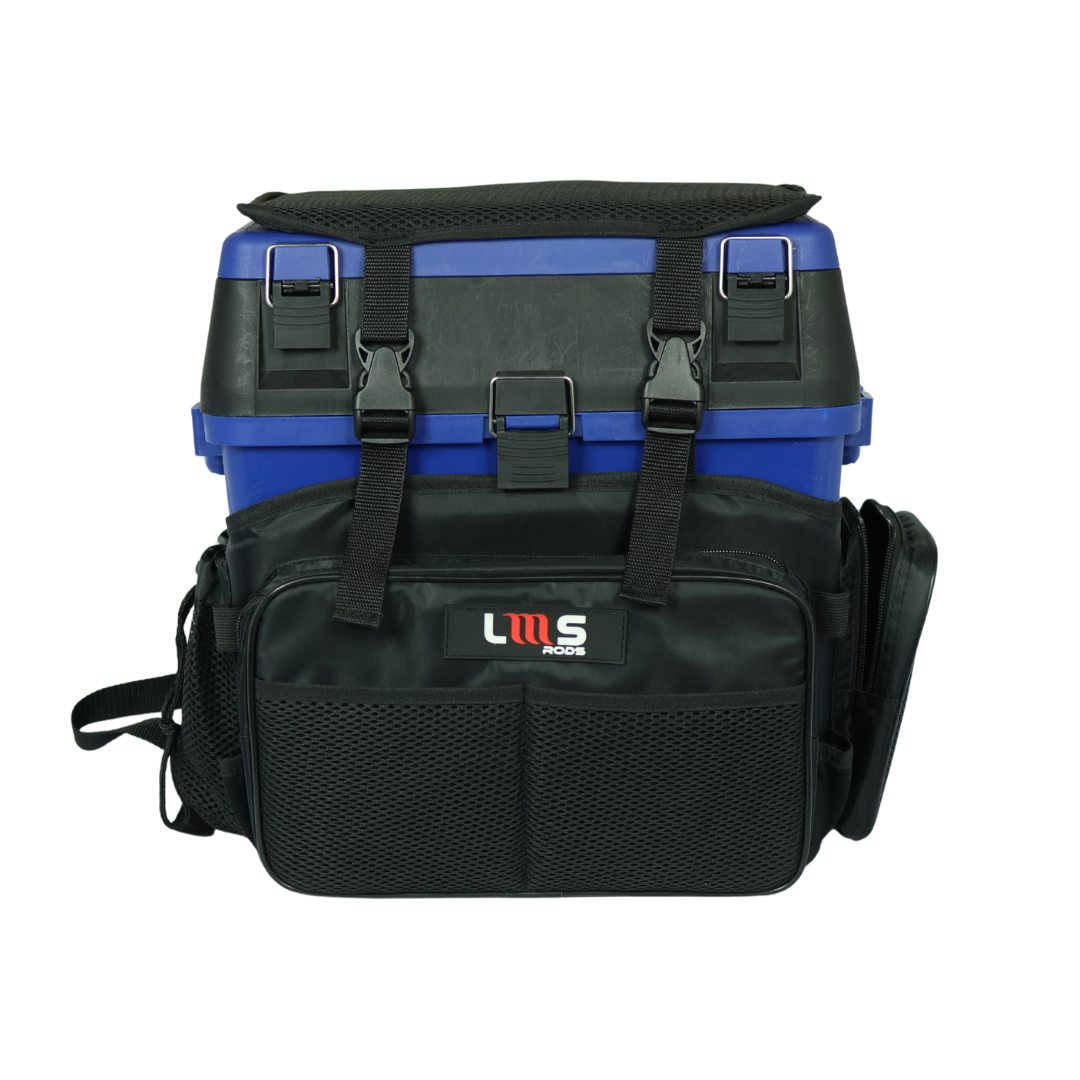 Na parte superior, a tampa possui um acolchoado simples, permitindo que seja utilizada como assento durante a pescaria.