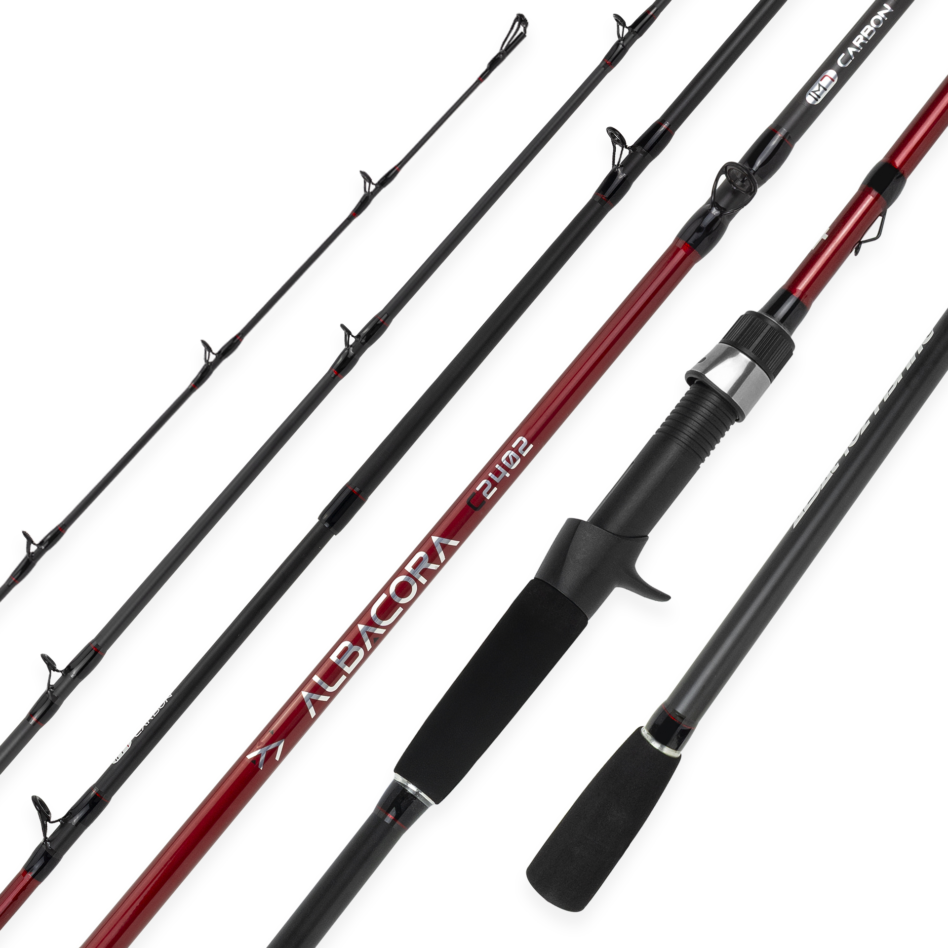 A vara Albacora é frequentemente usada em pesqueiros, destacando-se pelo seu design moderno com detalhes em vermelho. E agora no modelo RED, exclusividade fishco. Confeccionada com um blank em carbono tubular im7, possui cabo bipartido em EVA de alta densidade, passadores de pata dupla e uma ponteira anti-enrosco.
